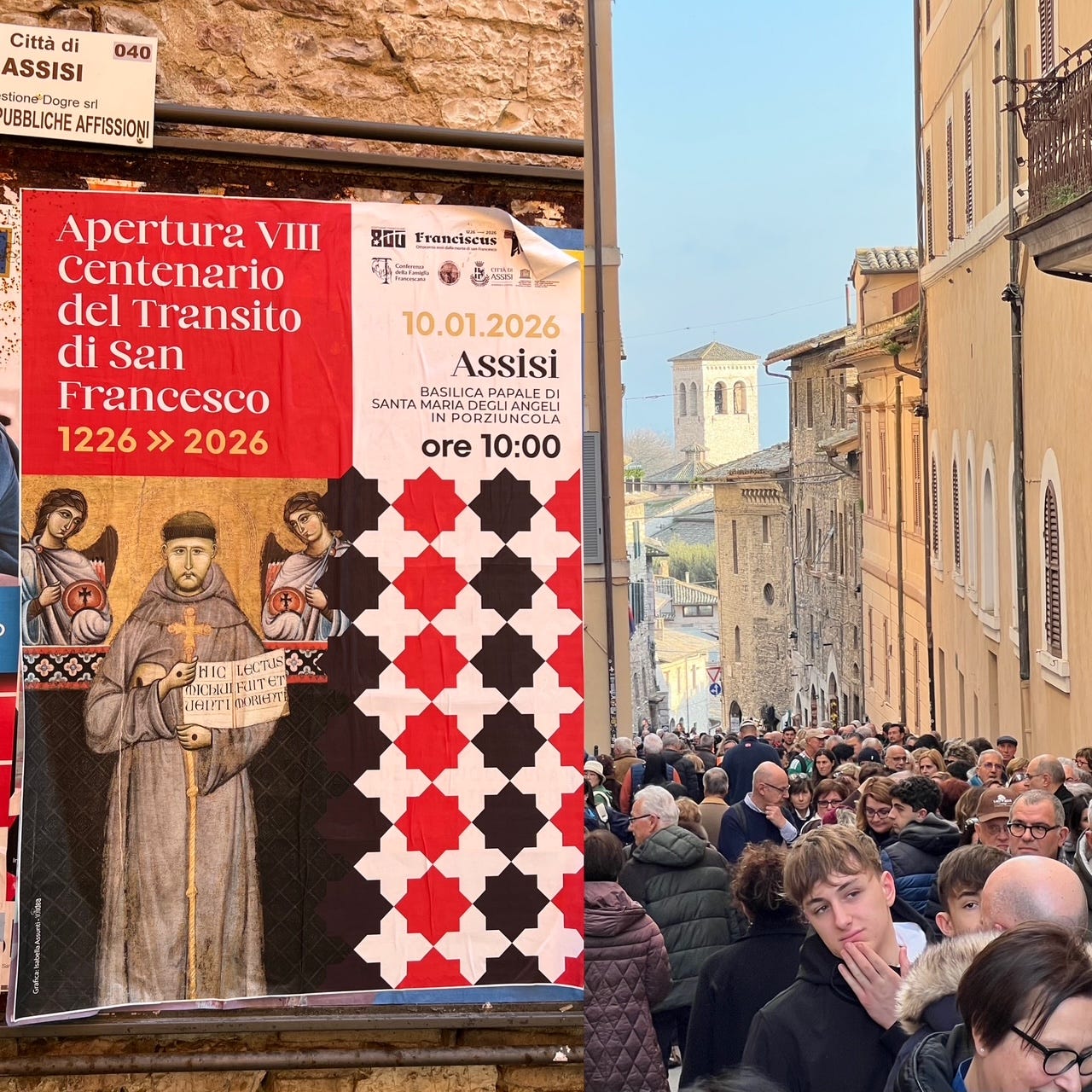 Was this what had brought C and I and 15,000 others—on the same weekend that the war began in Iran—to linger in the grey, stone streets of Assisi, to honor a man disowned by his family, who owned nothing, who gave what little he had away?